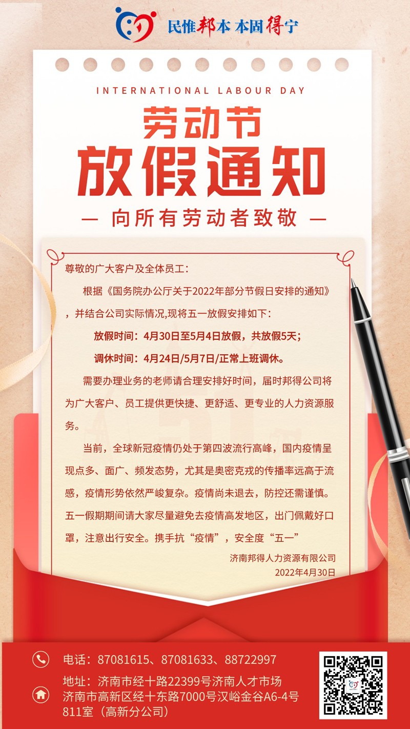 - 2024年5月濟南邦得人力資源有限公司高新分公司關(guān)于濟南...